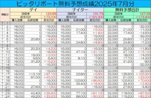【最新集計】2025年7月分無料予想集計スクショ