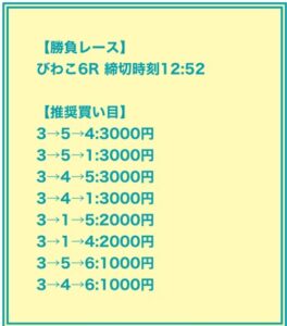①②⑥の決着。これは40.9倍となかなかの配当でした。