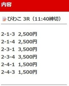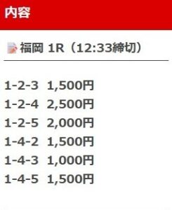 無料予想なので仕方ないですが、とにかく的中重視でまずは着実にプラスを目指すような内容かなと感じました。